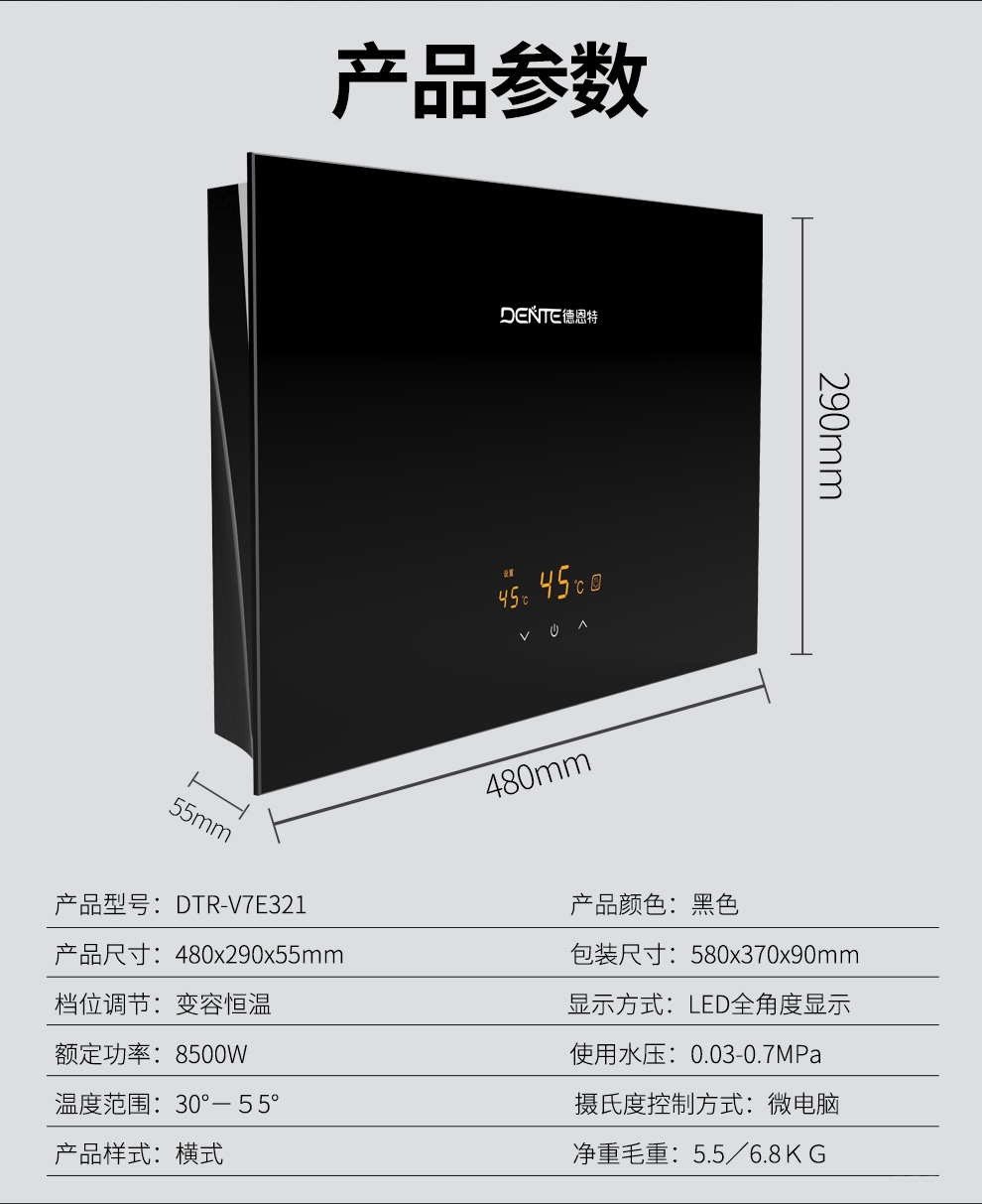德恩特DTR-V7E321恒溫即熱式電熱水器